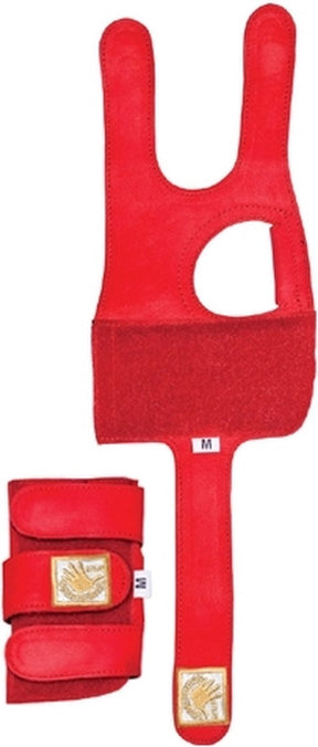 Les supports de poignet Golden Hands offrent un soutien aux gymnastes qui ont des problèmes avec leurs poignets pendant la gymnastique aux agrès. Les inserts en plastique fixent le mouvement du poignet. L'utilisation d'inserts supplémentaires ou différents permet de déterminer la rigidité souhaitée. Cette orthèse de poignet est fabriquée en cuir très souple.