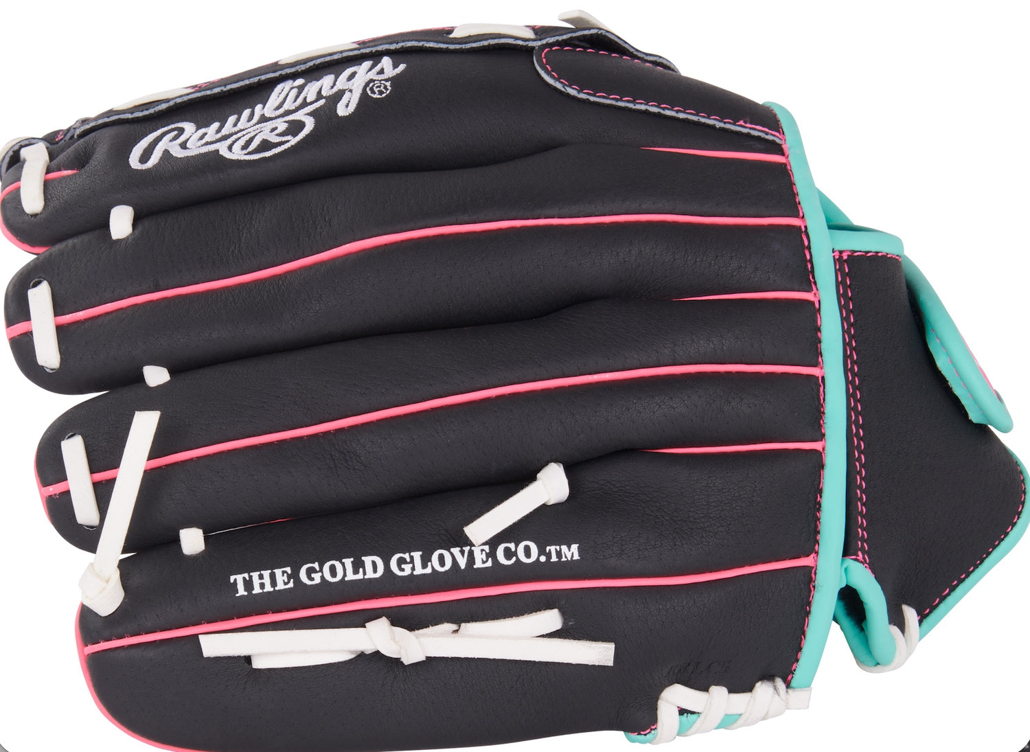 Rawlings - MLB - Softbal Handschoen - Sure Catch - Jeugd - 12 inch - Zwart/Roze/Turquoise / 12 inch is nabesteld en wordt verzonden zodra het weer op voorraad is.