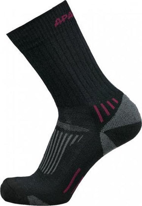 De Apasox Kazbek is een functionele sportsok gemaakt van ondermeer merino wol. Voorzien van ventilerende mesh op de wreef en versterkte zool met extra demping voor meer comfort tijdens lange tochten. De sokken gaan het ontstaan van geurtjes tegen en bieden een uniek ventilatiesysteem door gebruik te maken van meer-laagse technologie. Hierdoor wordt het vocht niet opgenomen, maar naar de buitenste absorberende lagen getransporteerd. Het vocht komt niet in contact met de huid waardoor je voeten droog, warm en comfortabel blijven.