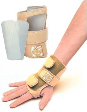Golden Hands Wrist support bieden ondersteuning voor turnsters die problemen hebben met hun polsen bij het toestelturnen en dan met name bij paardsprong. Door de plastic inserts wordt de beweging van de pols gefixeerd. Naarmate meer of andere inserts te gebruiken kan de stijfheid naar wens bepaald worden. Deze polsbrace is gemaakt van zeer zacht leer. Inclusief twee stuks schuimpadding en twee plastic inserts.
