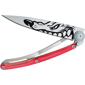 Deejo Tattoo 37g Red Winter Zakmes. Ultra-licht. Veilig sluitsysteem en gedecoreerd met prachtige laser gravering. Compleet met riem clip.